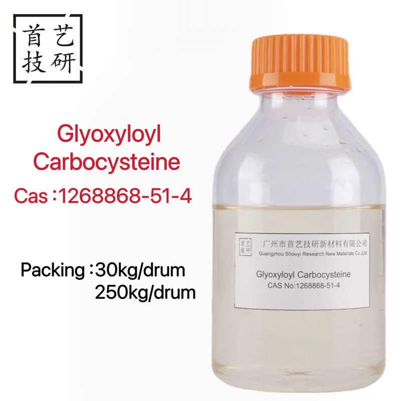 Clyoxyloyl Carbocisteína(50%) é uma tecnologia exclusiva concebida para ser utilizada em fórmulas capilares baseadas na sinergia de oxoacetamidas ácidas.penetra mais facilmente na fibra do cabelo através das cutículas, proporcionando mais luz, restauração, condicionamento,Força e resistência à fibra que podeGlyoxyloyl carbocisteína é uma tecnologia exclusiva concebida para ser utilizada em fórmulas capilares baseadas na sinergia de acidicoxoacetamidasTambém tem proteínas hidrolisadas que devido ao seu baixo peso molecular, penetram mais facilmente na fibra do cabelo através das cutículas, proporcionando mais brilhante, restauração, condicionamento,resistência e resistência às fibras que já podem ser danificadas por processos químicos.